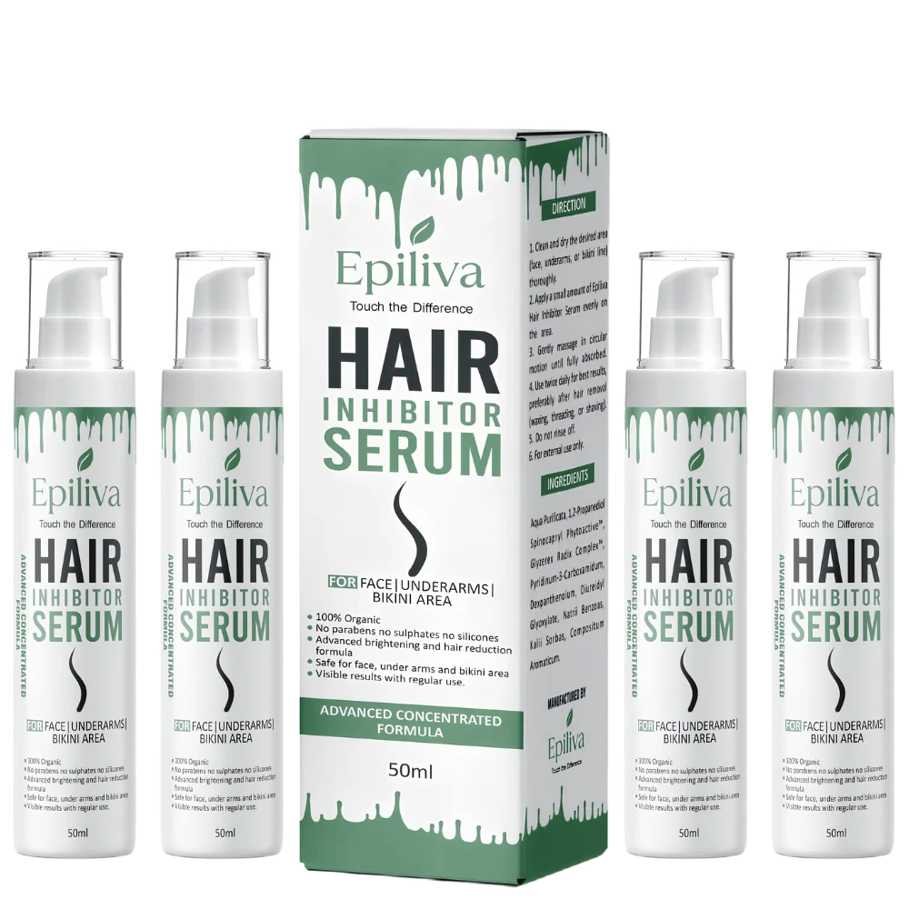 Discover the elegance of effortless beauty with Epiliva Hair Inhibitor Serum. Crafted with care, it works deep within to gently slow regrowth, leaving skin softer, smoother, and radiantly flawless. Its refined, skin-loving formula is designed for delicate areas face, underarms, and bikini ensuring comfort with every touch. With Epiliva, confidence isn’t just felt, it’s beautifully seen.